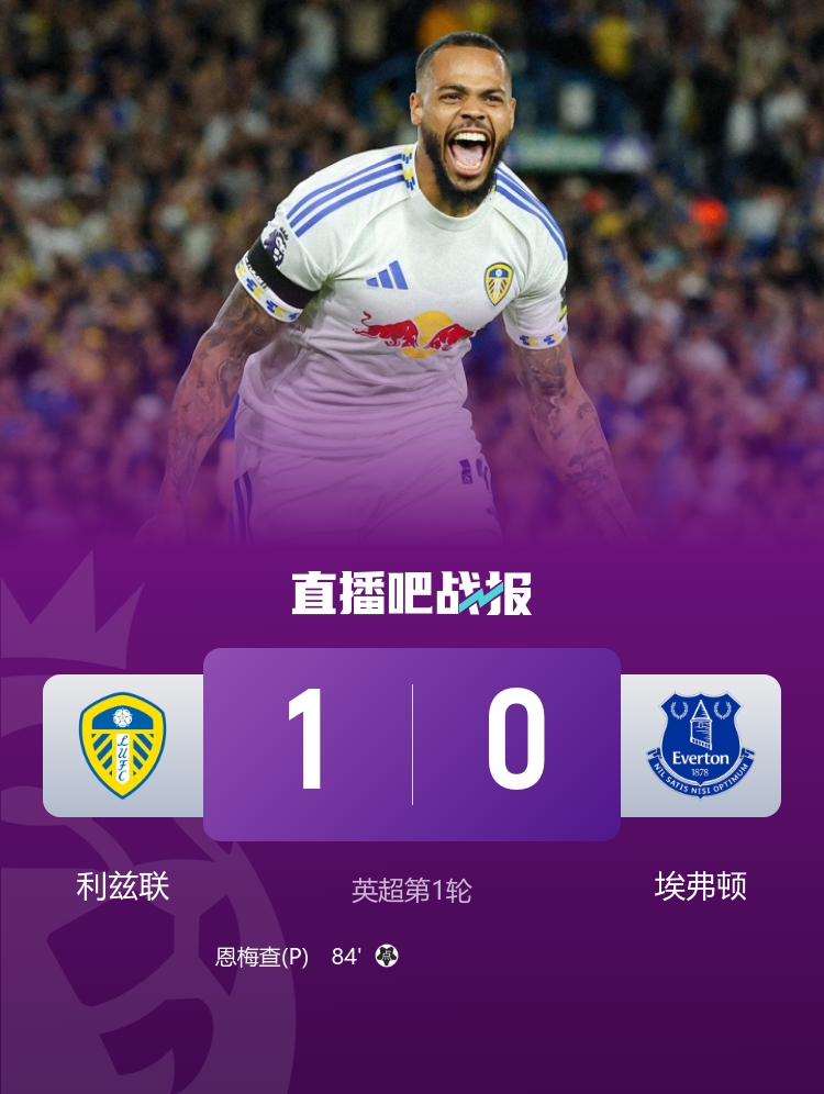 8月19日讯 英超首轮比赛,利兹联主场1-0击败埃弗顿。